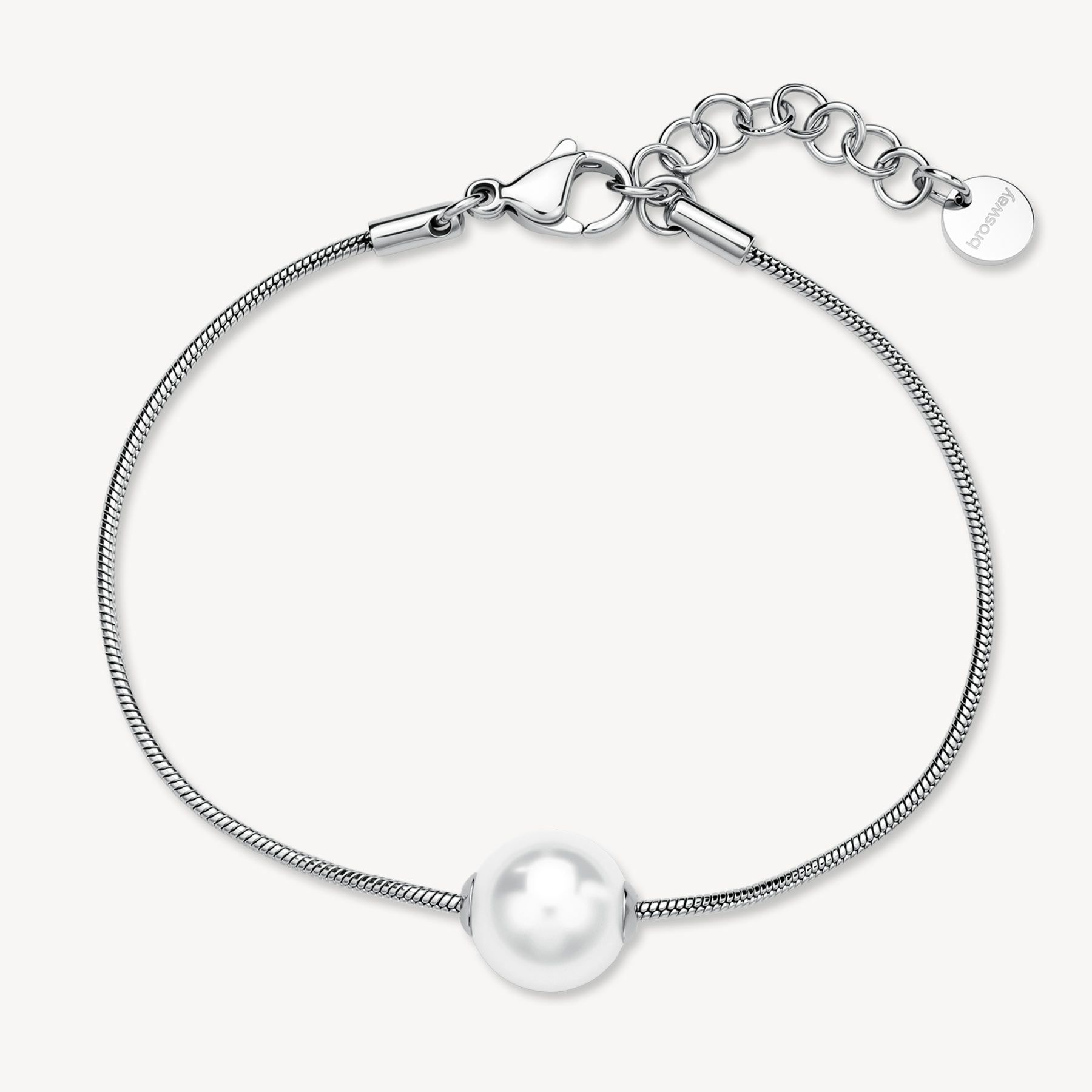 * Bracciale in acciaio 316L con perla di conchiglia centrale.