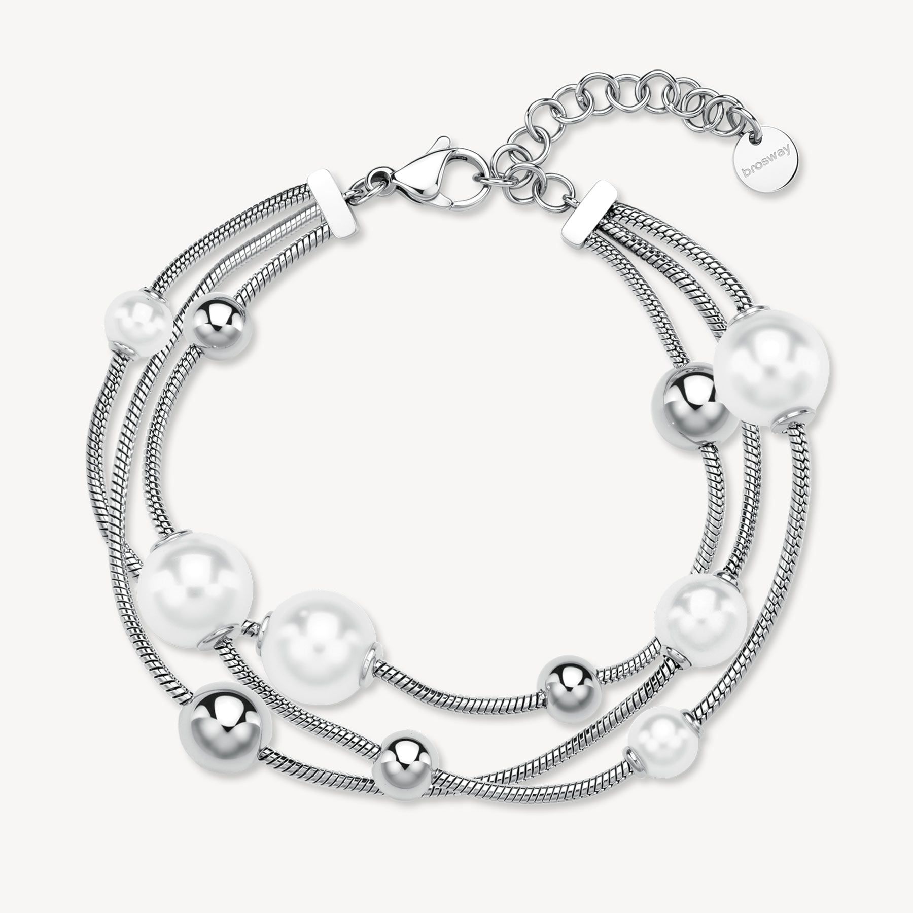 * Bracciale multifilo in acciaio 316L con sfere e perle di conchiglia.