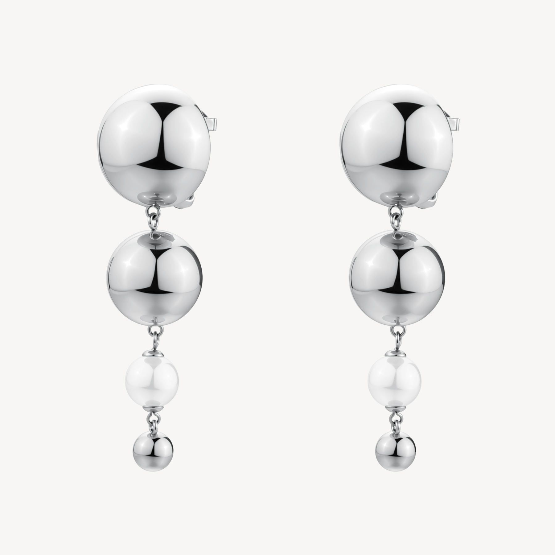 * Orecchini pendenti in acciaio 316L, con sfere e perle di conchiglia.