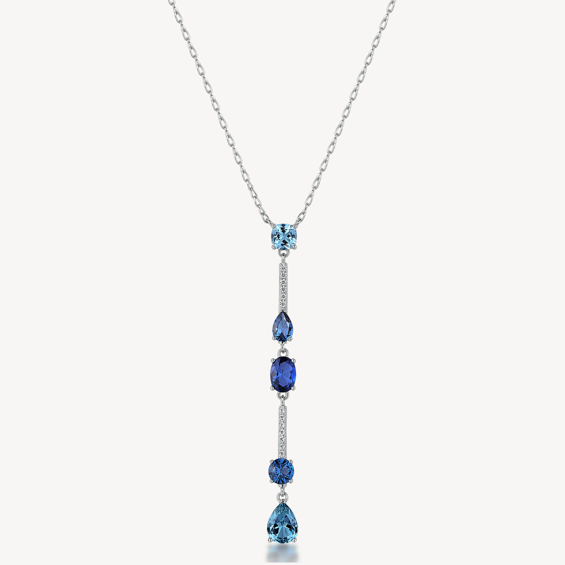 * Collana girocollo in argento rodiato 925‰ e pendente con cubic zirconia chiari e cubic zirconia colore sapphire.