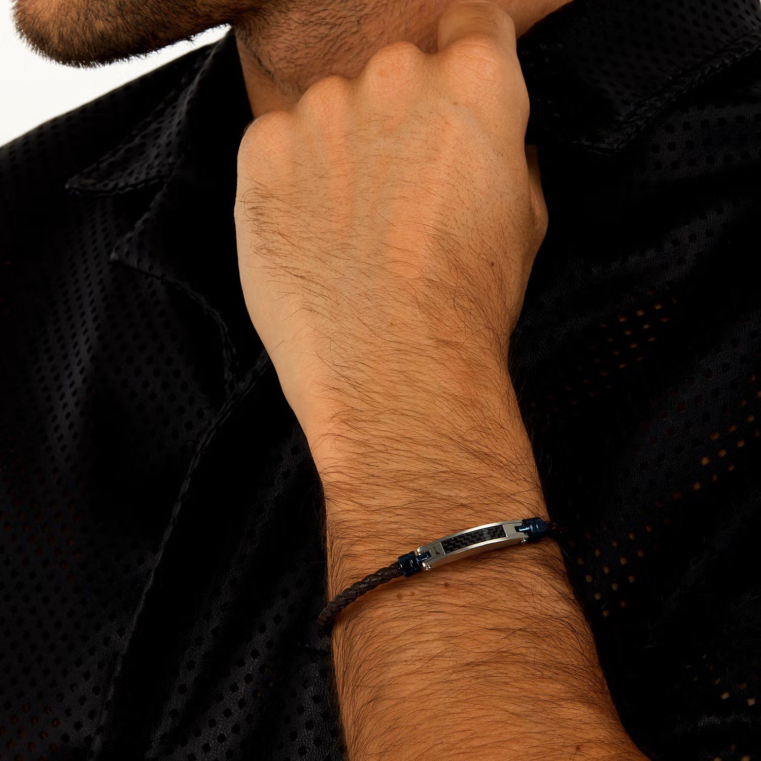 * Bracciale in pelle marrone e acciaio