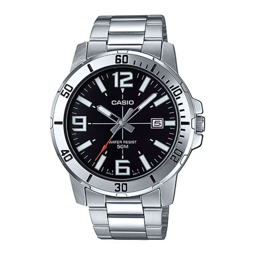 * Cassa in metallo* bracciale in acciaio* vetro minerale* W.R. 5 bar* movimento al quarzo con datario