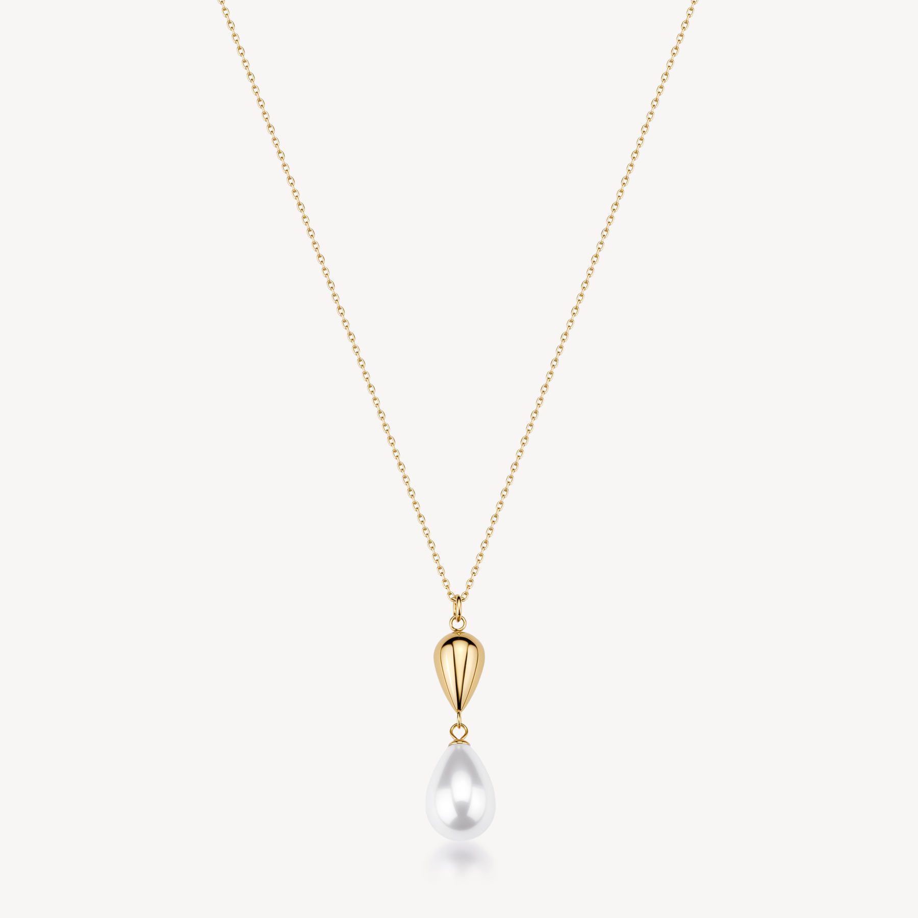 * Collana girocollo in acciaio 316L e finitura pvd oro 14K, con perla di conchiglia e pendente a goccia.