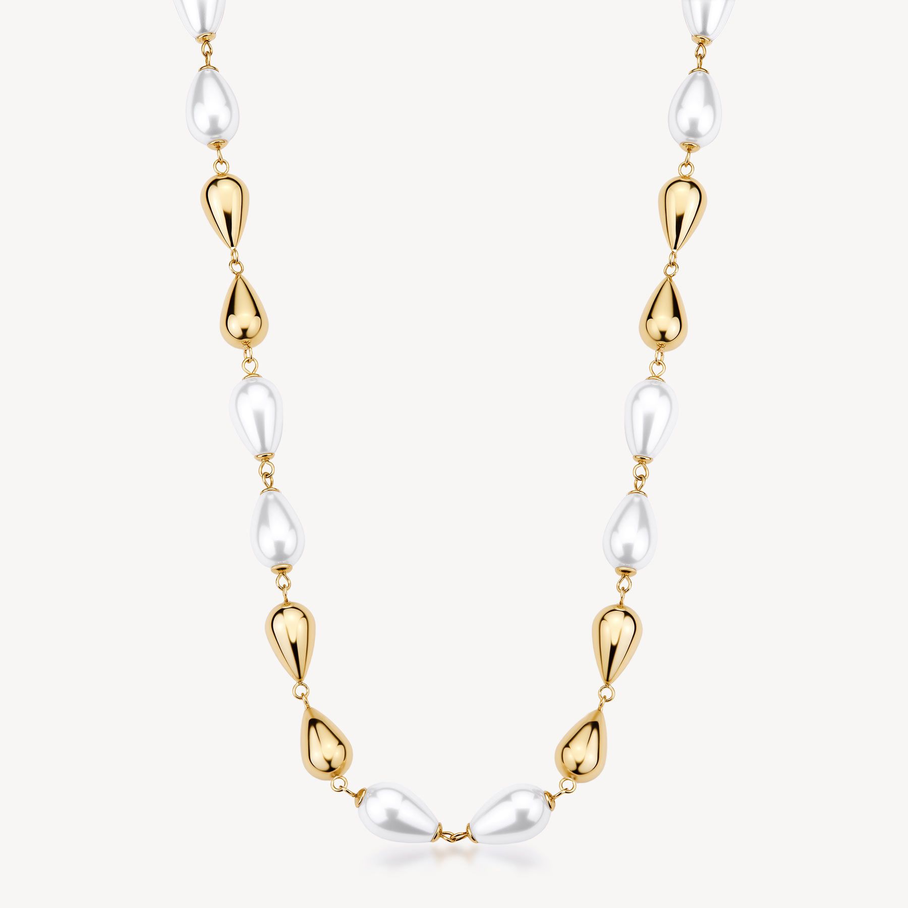 * Collana girocollo in acciaio 316L e finitura pvd oro 14K, con perle di conchiglia.