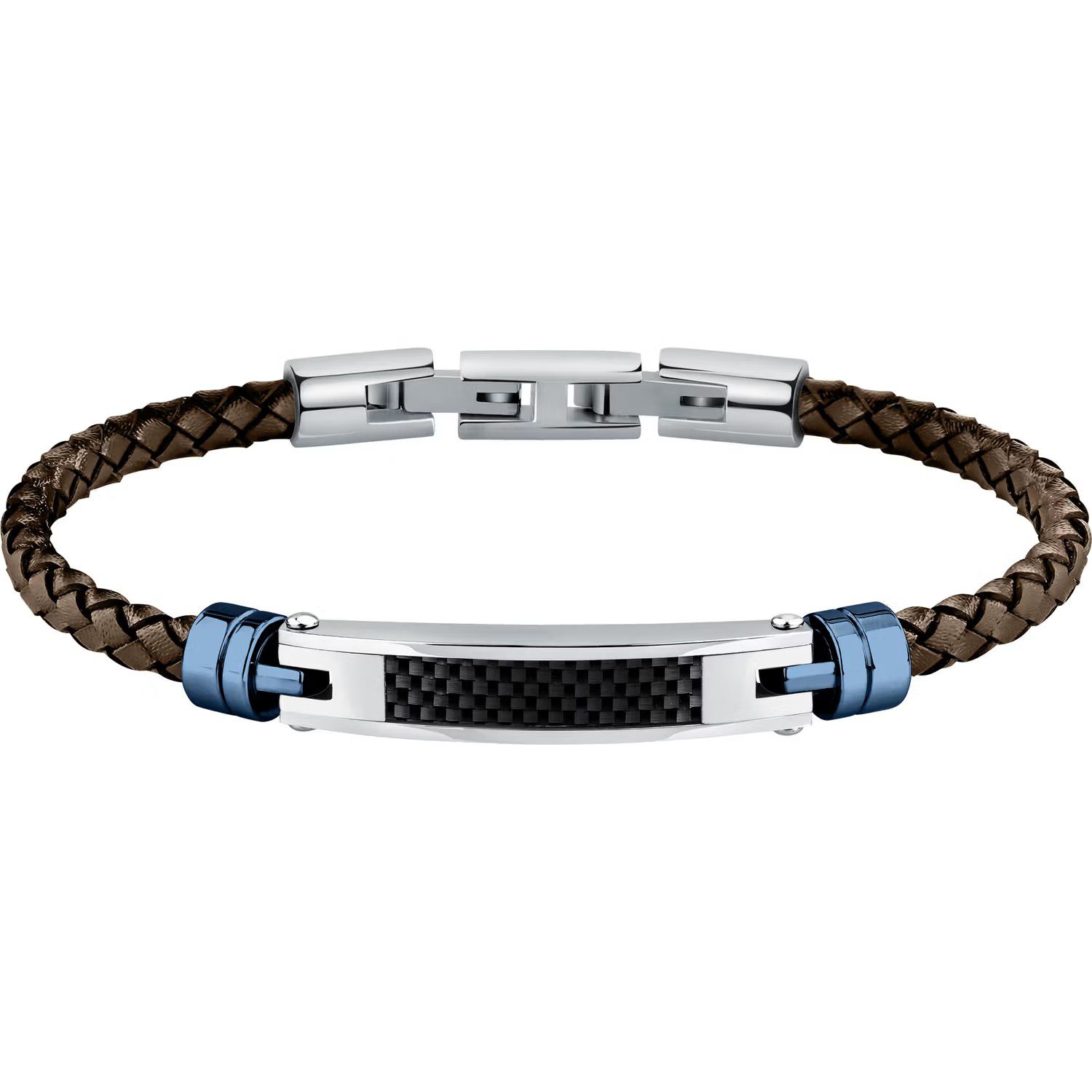 * Bracciale in pelle marrone e acciaio